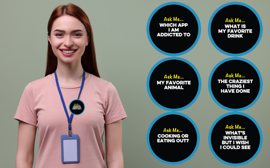 Transform your events, workplace, meetings, and gatherings with innovative Ice Breaker Question Buttons! These eye-catching, stylish buttons feature the best ice breaker questions, specially crafted to spark conversations and connections. Perfect for introverts and extroverts alike, our buttons make it easy for everyone to engage and interact.